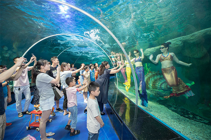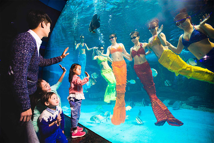 除了白鲸、海豚、北极熊等珍稀海洋极地动物,在这里您还能看到海洋萌宝的精彩表演,如梦幻海洋浪漫光影秀,海豚梦幻水幕秀,人鱼奇缘等等。